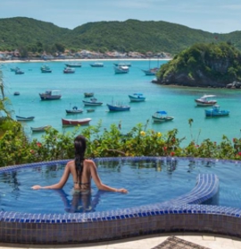Il lussuoso hotel boutique Casas Brancas si trova a Búzios, e offre ampie terrazze con vista panoramica sull'oceano e una palestra aerobica.