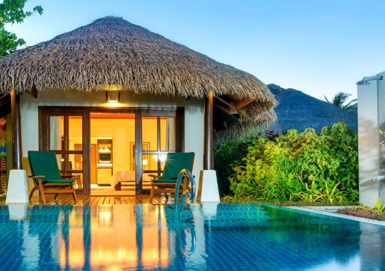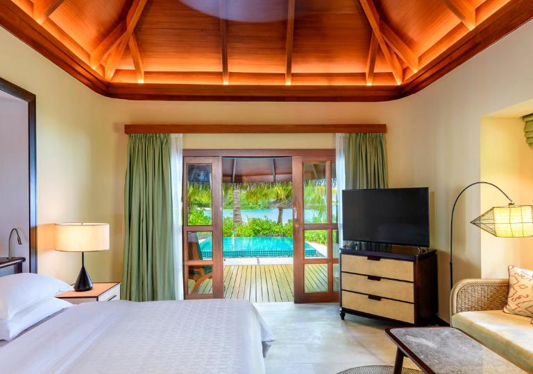 -Ocean Pool Villa: le Ocean Pool Villa spiccano per la loro grande piscina con vista alla laguna e per la loro posizione in una zona riservata e privata dell’isola. Con una superficie di 220 m2 e capacità per ospitare 2 adulti ed un bambino, dispongono di tutti i lussi e le comodità al puro stile Sheraton.