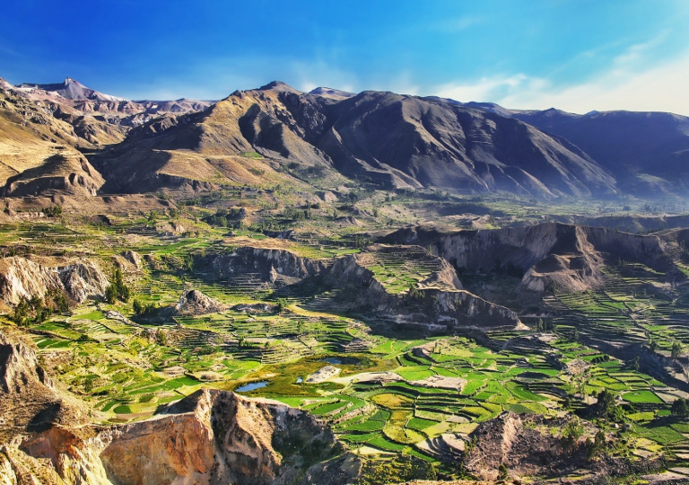 Prima colazione partenza in direzione della Valle del Colca, lungo il tragitto che attraversa la Pampa Cañahuas, nella Riserva Nazionale Agua Blanca. Durante il tragitto nella vallata, sarà possibile ammirare le bellissime terrazze, di origine pre-colombiana. Pranzo in ristorante presso il pueblo di Chivay. Sistemazione in hotel e pernottamento in hotel.