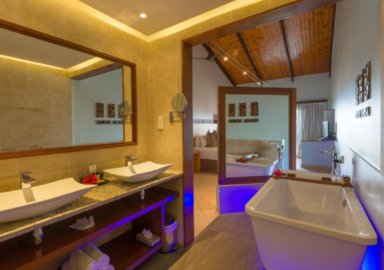 Tutte spaziose e climatizzate, le camere e le suite dispongono di una terrazza, di viste sull'Oceano Indiano, di un'area salotto, di una TV satellitare, di un minibar e di un bagno interno con asciugacapelli e set di cortesia.