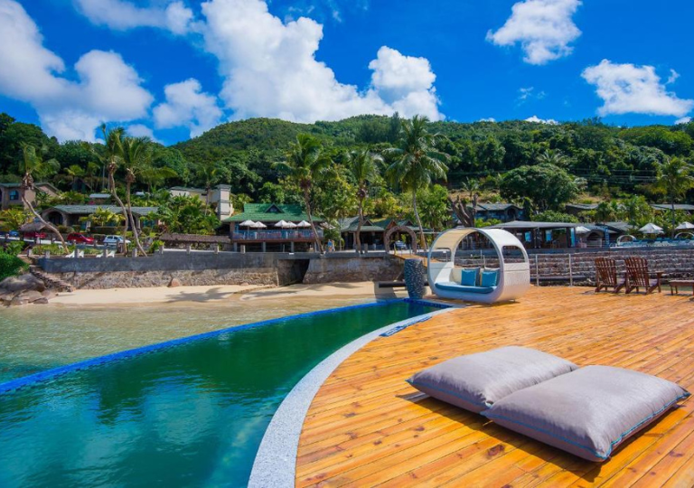 Affiancato da numerose piccole spiagge private che fanno parte della grande baia di Anse Bois de Rose. Gli ospiti hanno sempre accesso ad ampie aree prendisole; grandi terrazze di sabbia; amache con palme e lettini.