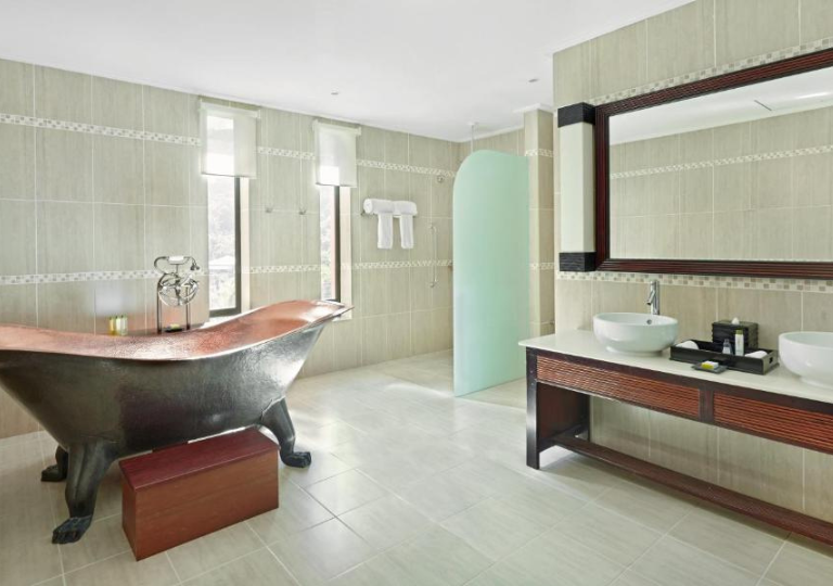 -Camera King Premium vista oceano: vasca idromassaggio all'aperto, vasca in rame, balcone, vista panoramica sull'oceano, aria condizionata regolabile autonomamente, WiFi gratuito. Dimensione camera: circa 79 mq. Immergiti nella tua vasca idromassaggio all'aperto per rilassarti. Il lussuoso bagno dispone di cabina doccia a pioggia e vasca in rame. Ogni camera è inoltre dotata di TV HD da 42 pollici, connessione Wi-Fi gratuita e area salotto con un piccolo divano e scrivania.