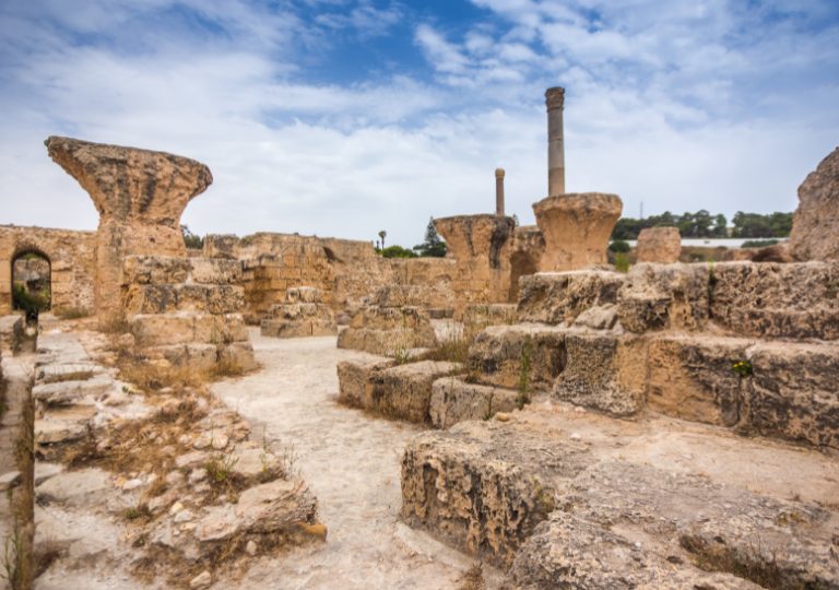 Sulla sponda orientale del lago di Tunisi si trova il sito archeologico che più di tutti rappresenta la varietà di popoli che hanno colonizzato il paese: fenici, romani e arabi, hanno tutti lasciato un segno della loro dominazione nelle architetture che ancora oggi caratterizzano la città di Cartagine.
